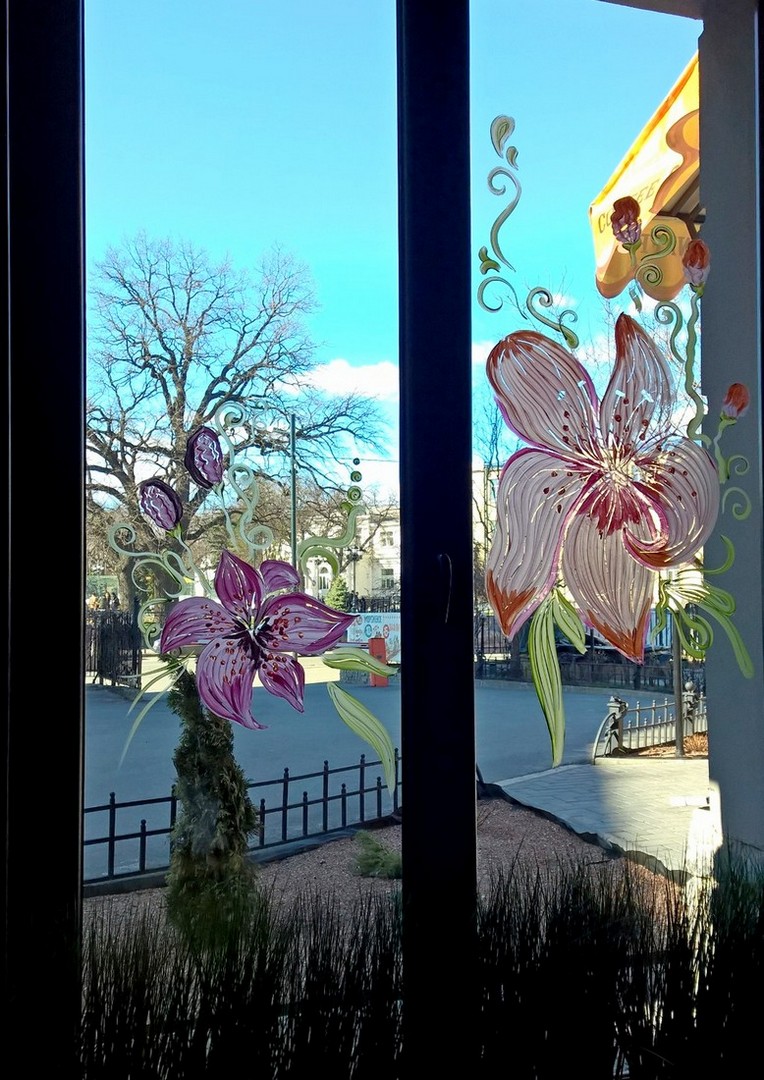 Очень нравится как украшают окна в этой кафешке – посезонно. Сегодня было вот так.