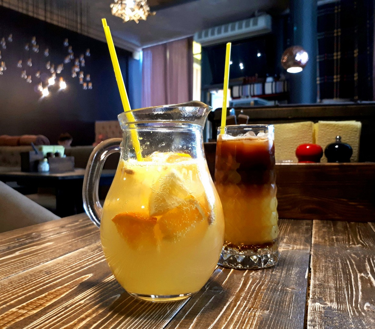 Стейки, как обычно. Напитки новые – облепиховый морс и апельсиновый кофе.