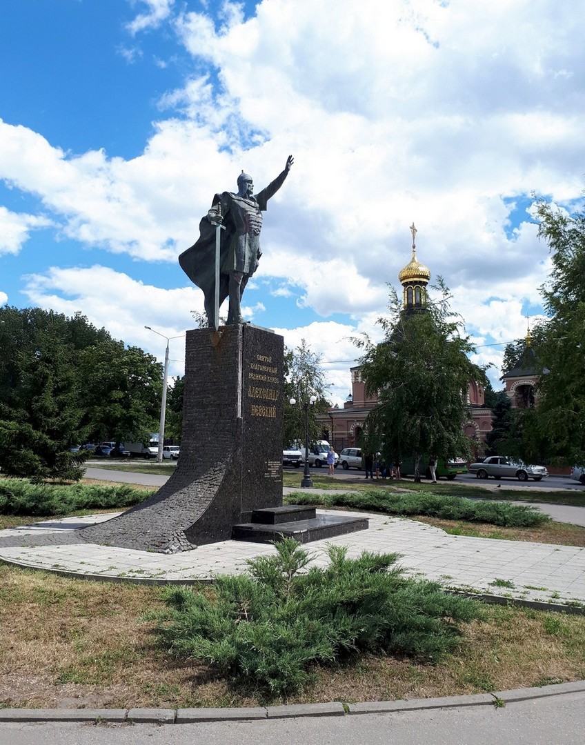 В глубине которого виднеются одно и двухэтажные строения.
