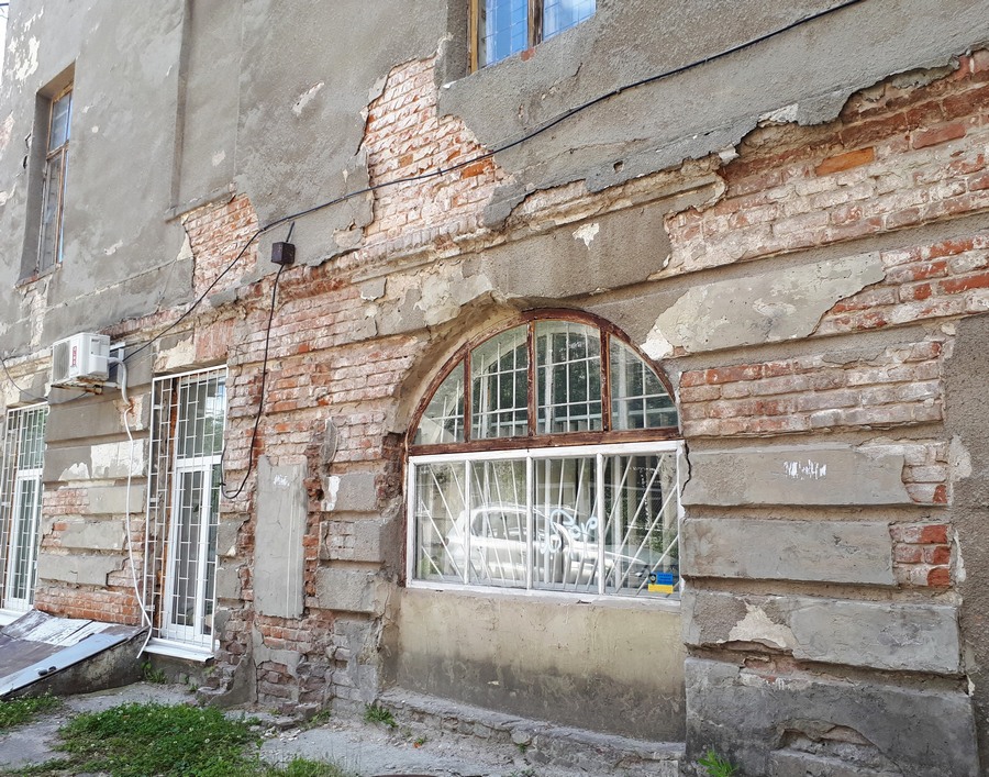 Дома старые, с обвалившейся штукатуркой, но кое-где даже виднеются новые пластиковые окна.