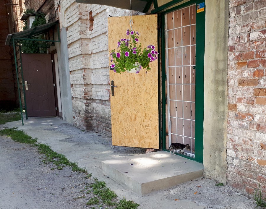 Газоны аккуратно подстрижены, цветут цветочки, кое-где украшают навесными цветами. Все идет своим ходом. Даже котята резвятся у порога