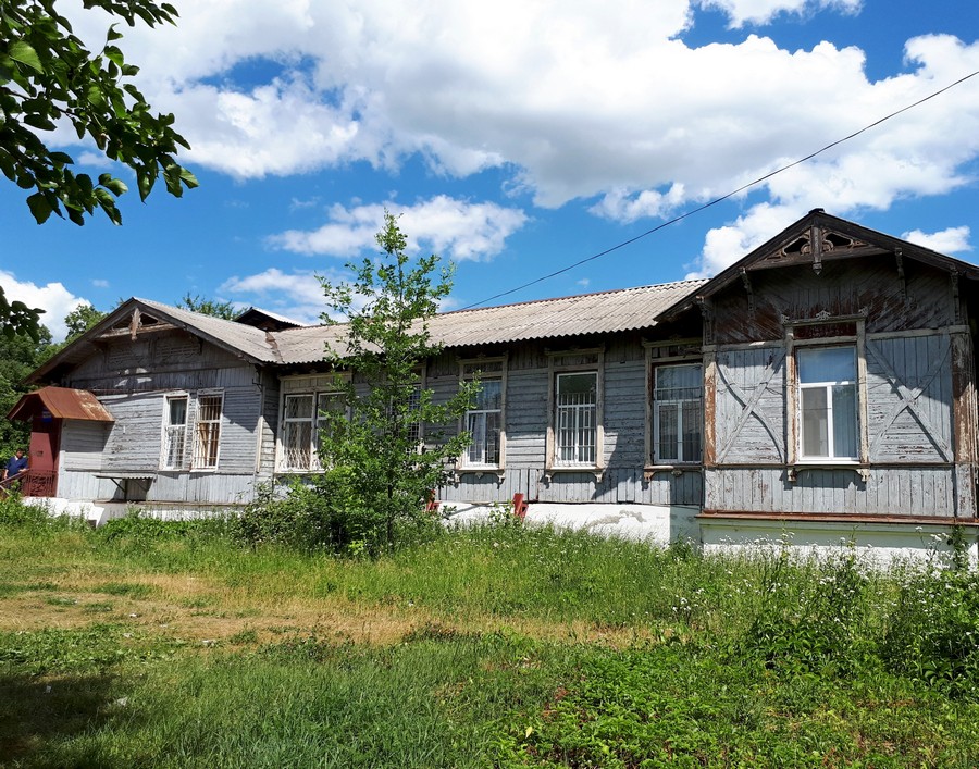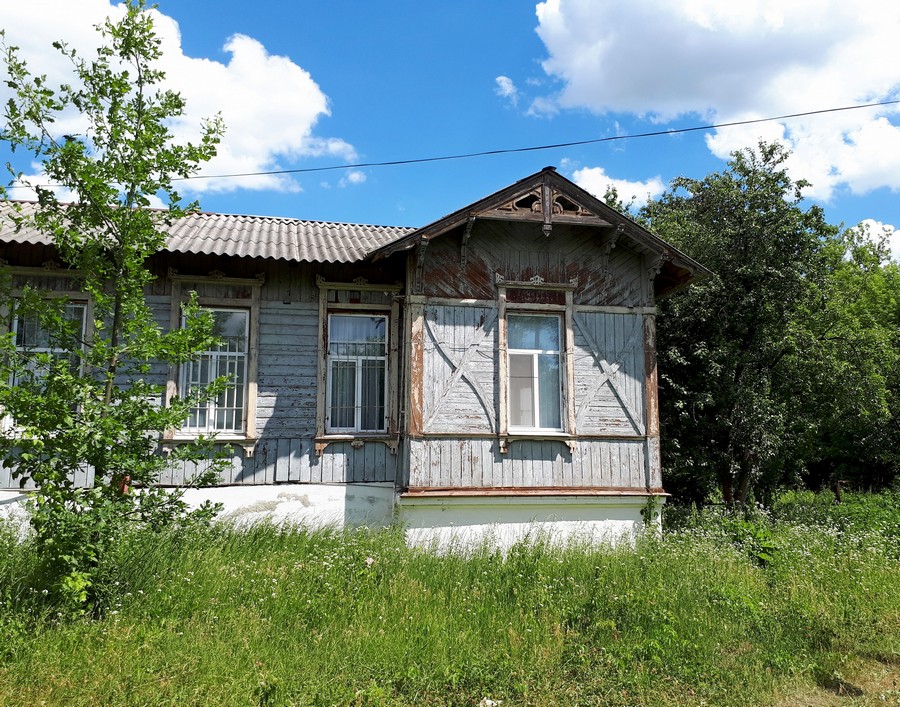 В дальнем углу парка стоит одинокий деревянный дом. Кое-где сохранилась даже резные наличники на окнах.