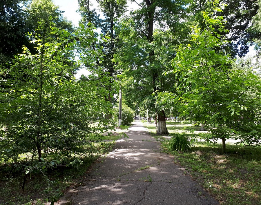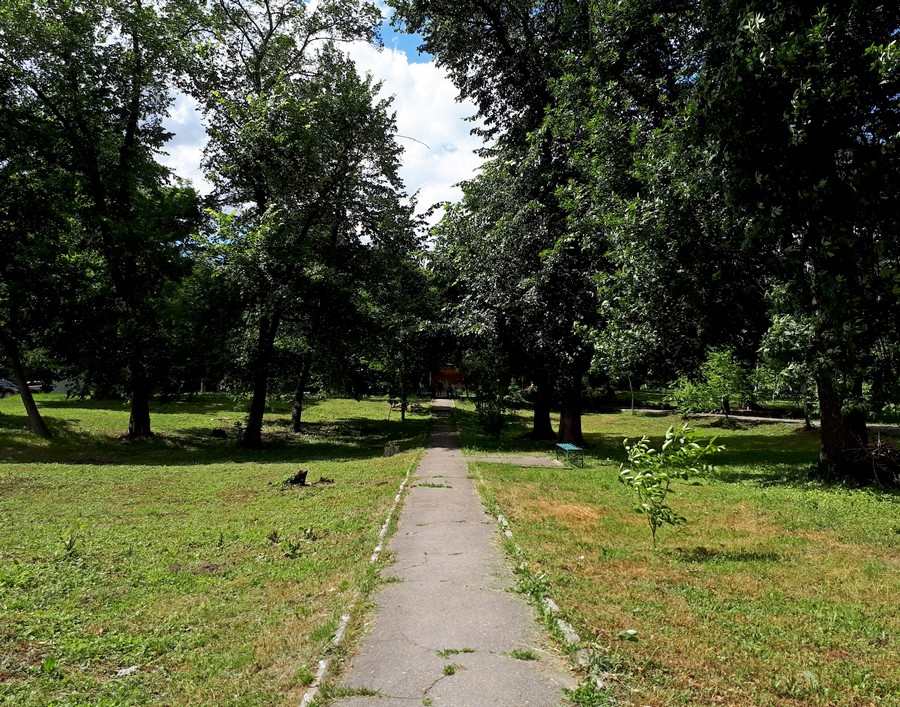 Итак, зайдя в ворота тропинка ведет по парковой зоне.