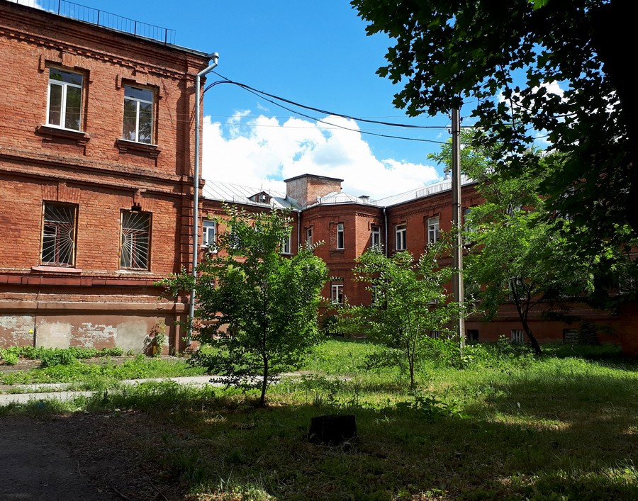 Которая приводит нас к очередному кирпичному зданию. Тут уже людно. Кто-то сидит на скамеечках, кто-то гуляет.