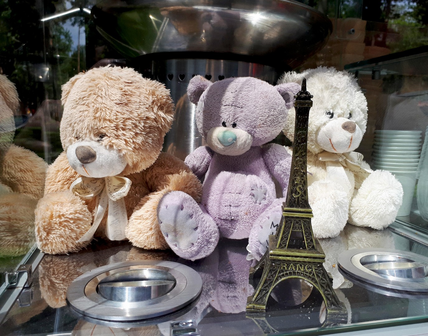 А эти милые мишки живут в шоколадном фонтанчике. Вернее рядом с ним.