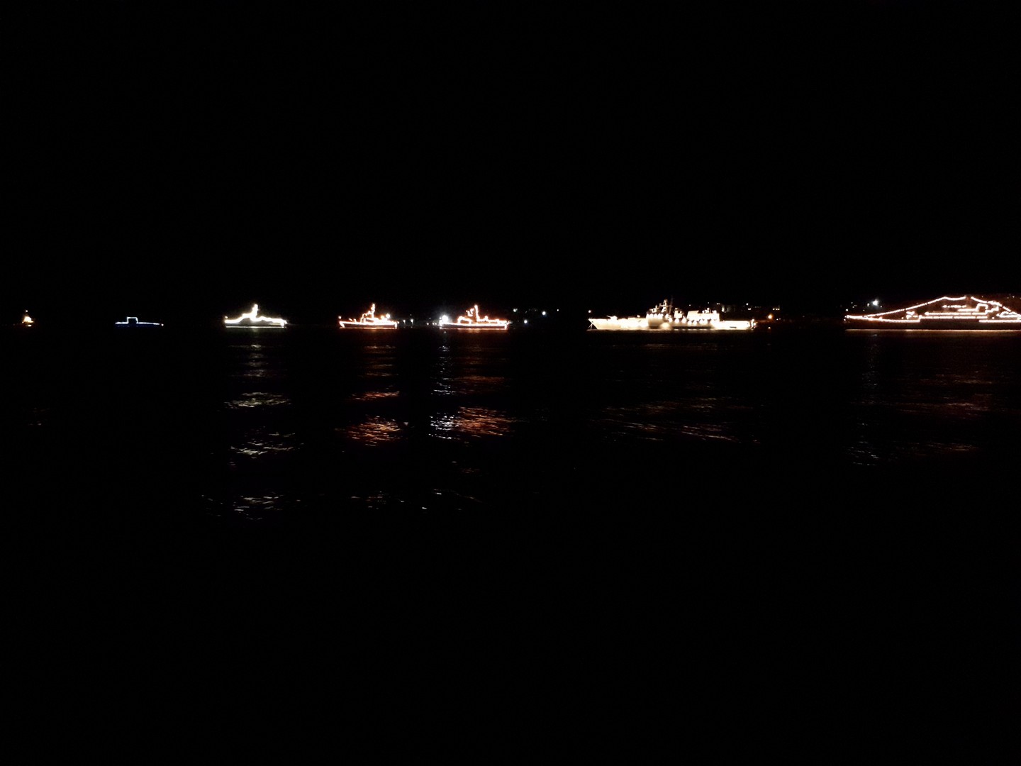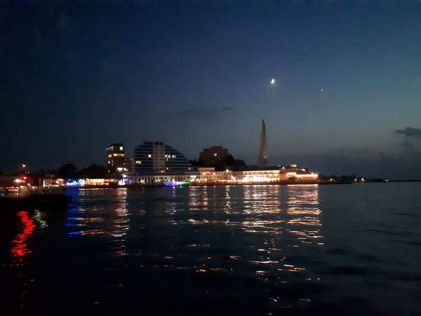 Вечерний город уже не производит такого впечатления. Темно, всех нюансов не видно. А еще и Приморский светится всеми цветами радуги, и кораблики готовые ко Дню флота стоят на рейде украшены.