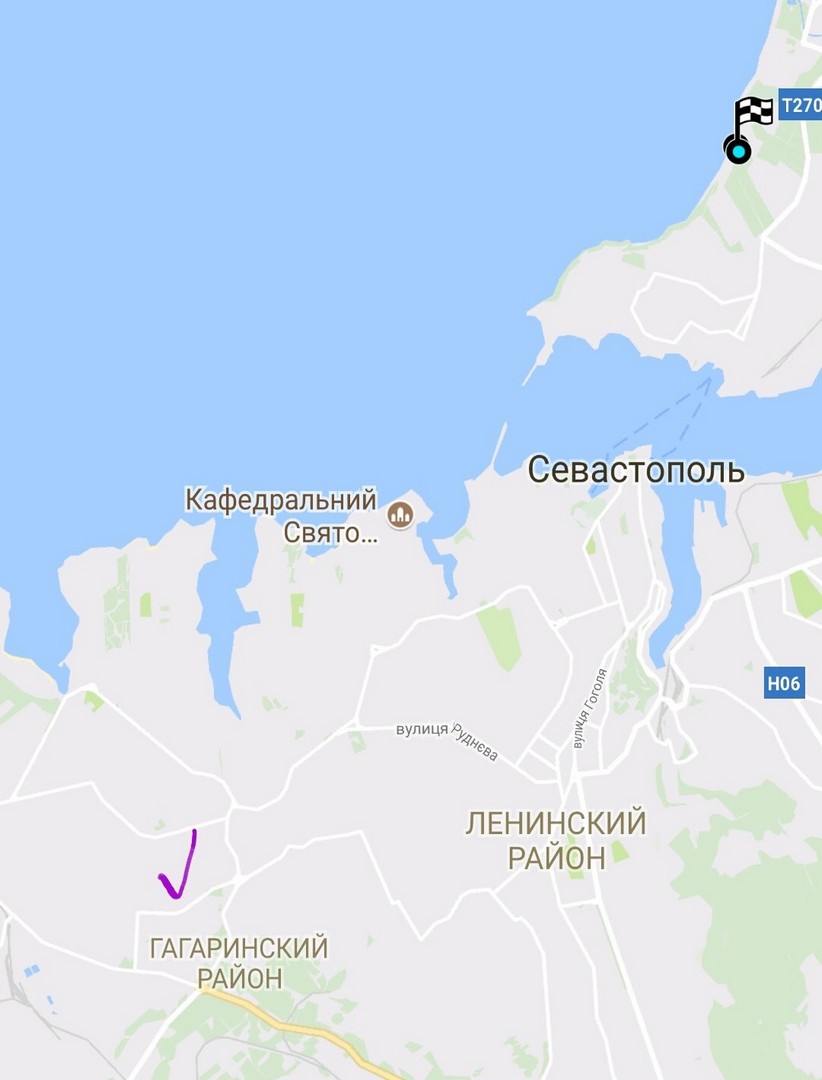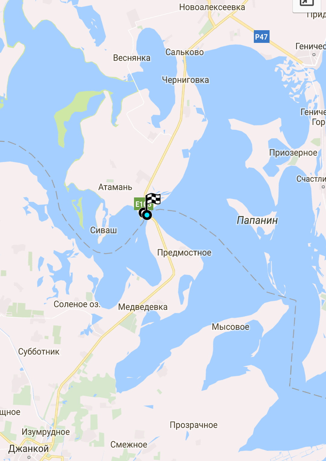 Вот тут обозначено на карте где мы шли пешком по дороге в Крым