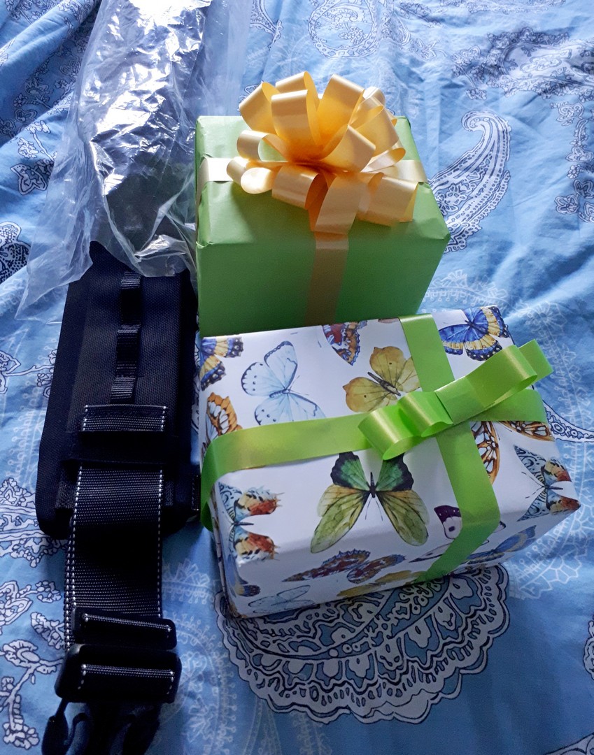 Муж подарил подарки. Сперва подарил вот ту длинную черную штуку в чехле слева на фото. А потом принес две коробки.