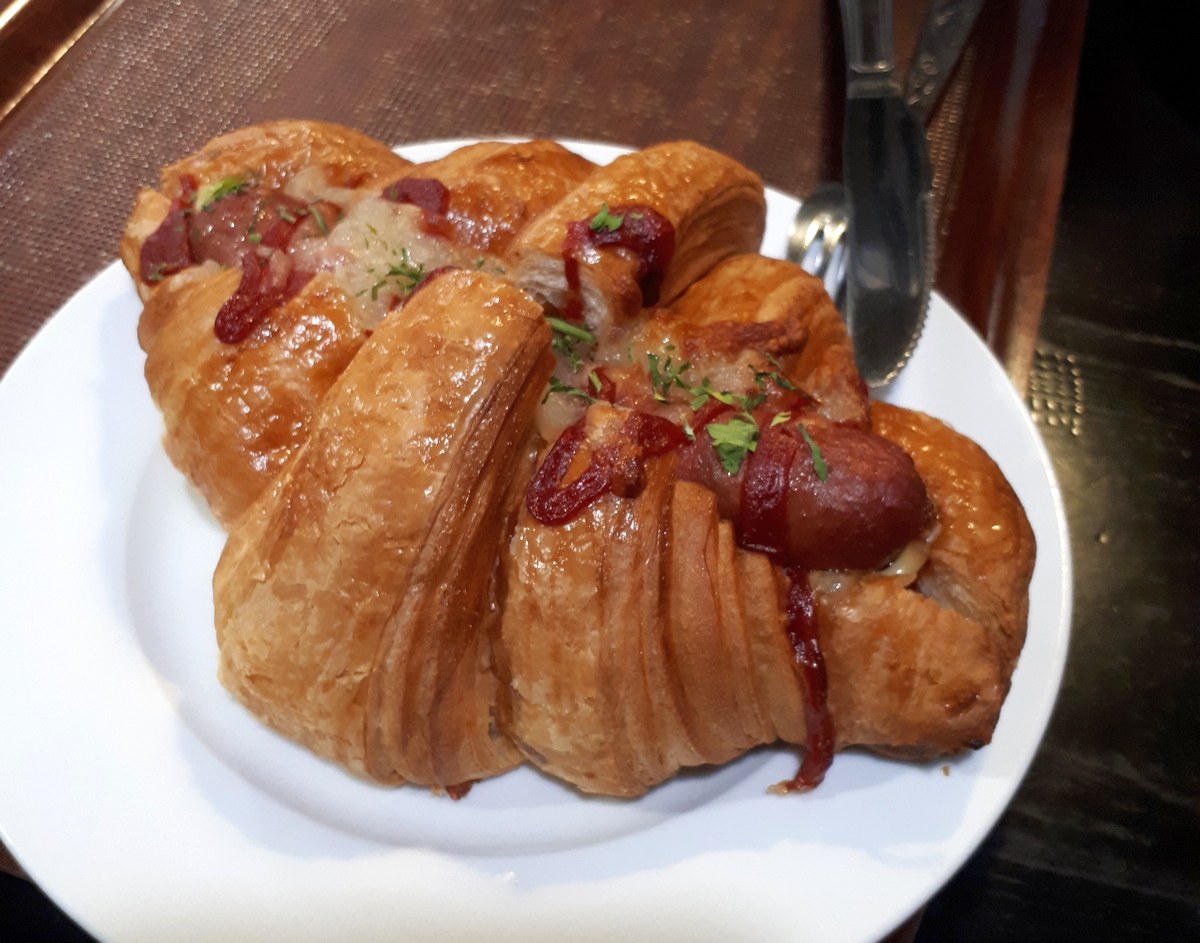Дождалась окончания игрушки и поехали с мужем в кино. Перед фильмом “диетический” круасан с сосиской.