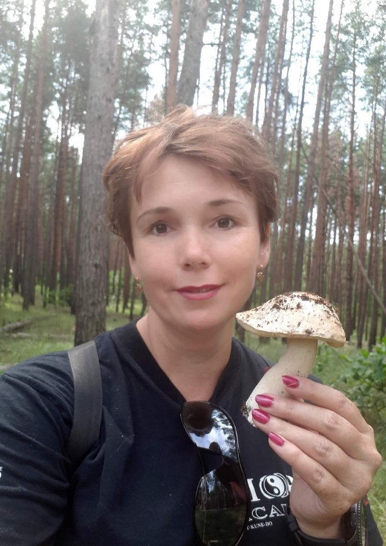 После дождей проснулись грибы. Много. Разные. Первый белый нашла Катя, я-то их совсем не знаю.