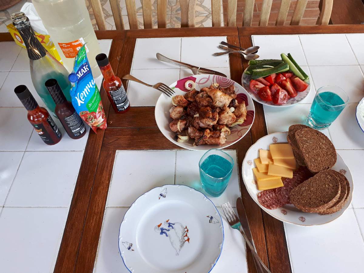 Шашлык готов! “Бирюзовое шампанское с серебряной пылью”, как выразилась Катя тоже. Какое же всё вкусное! Спасибо самому замечательному мужу на свете!
