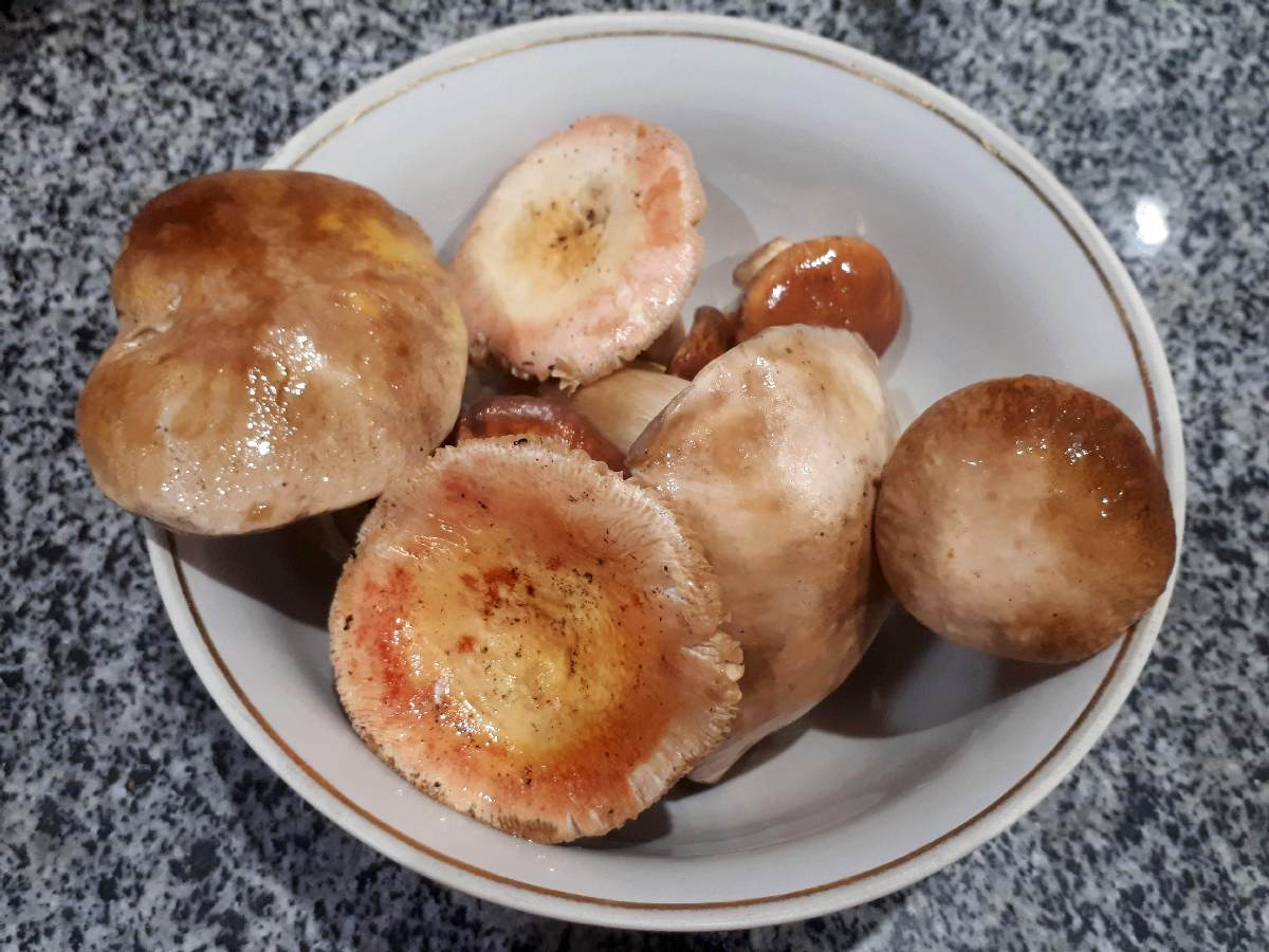 Искали сыроежков, но находились только козлята, да и то мало, червивые и сухие. Внешне масленок обыкновенный, но дома при варке было обнаружено, что они поменяли цвет на фиолетовый, значит козлята.