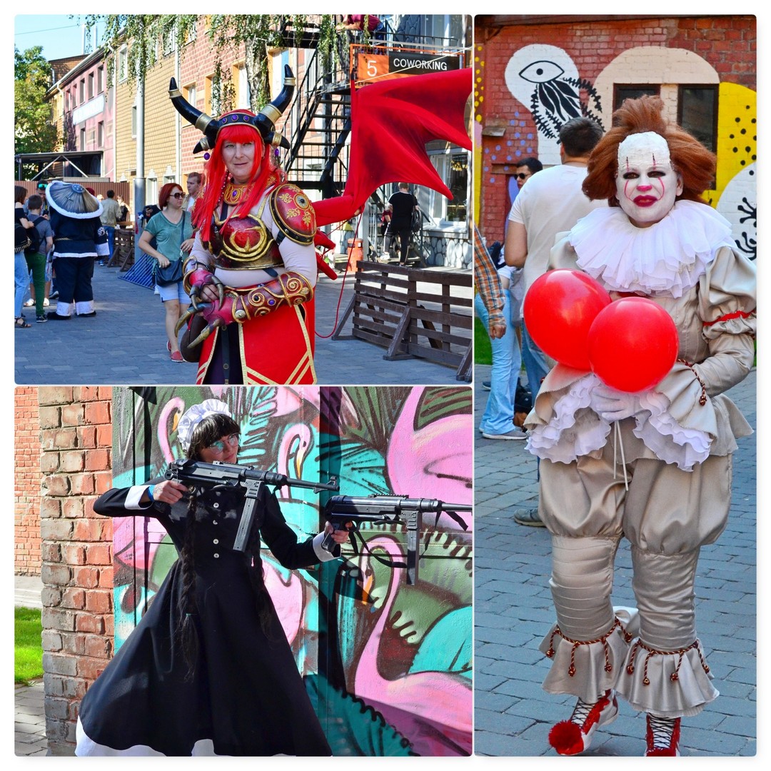 Народу тьма! Кто полностью в костюмах, кто-то просто в парике или с интересным мейк-апом. Были даже костюмированные собаки, но их заснять не удалось.