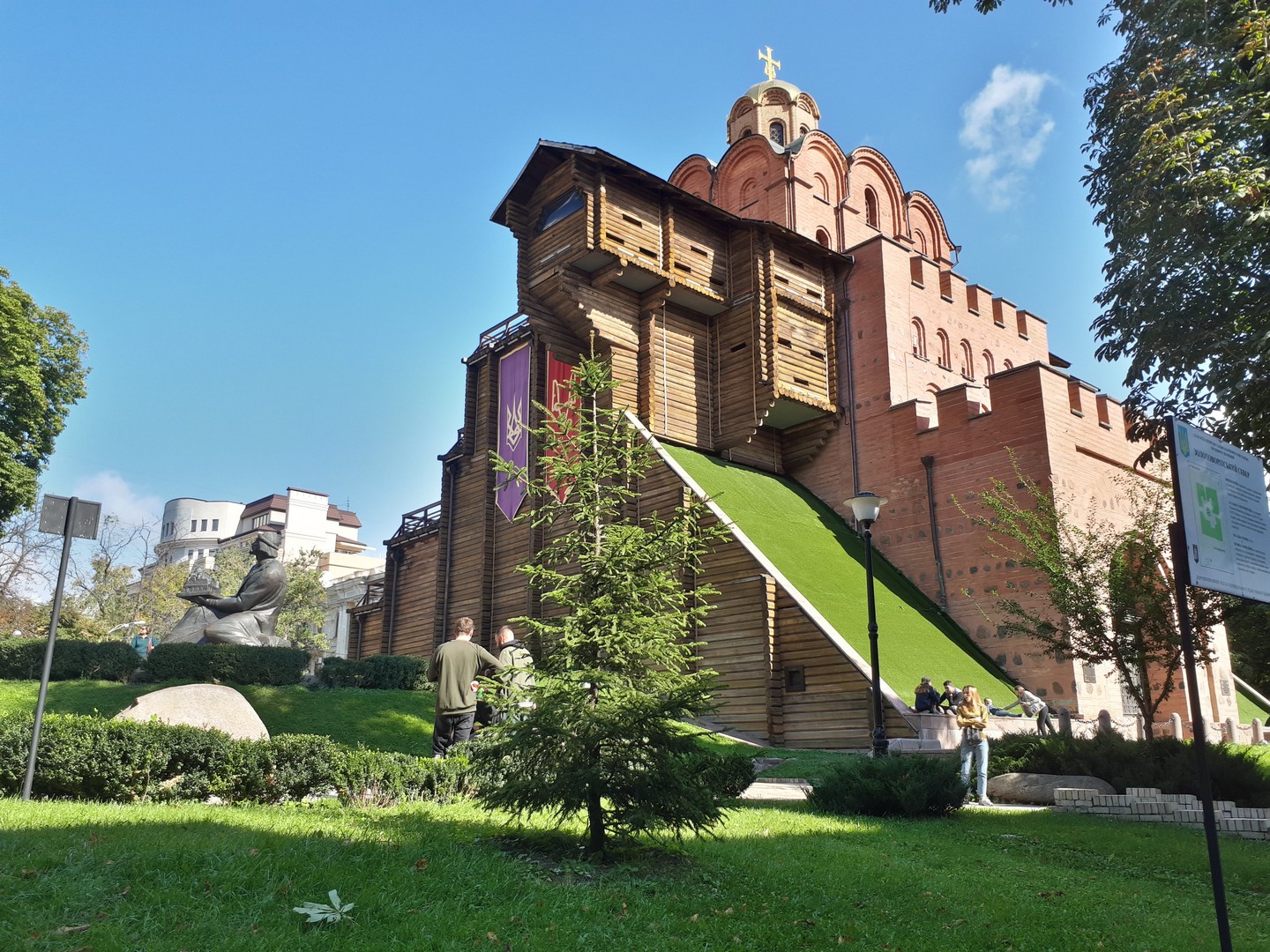 Отойдя от Крещатика буквально на 20 метров в переулок – тишина, спокойствие, практически пустые улицы. Даже одна пара смогла устроить фотосессию без попадания в кадры посторонних людей.