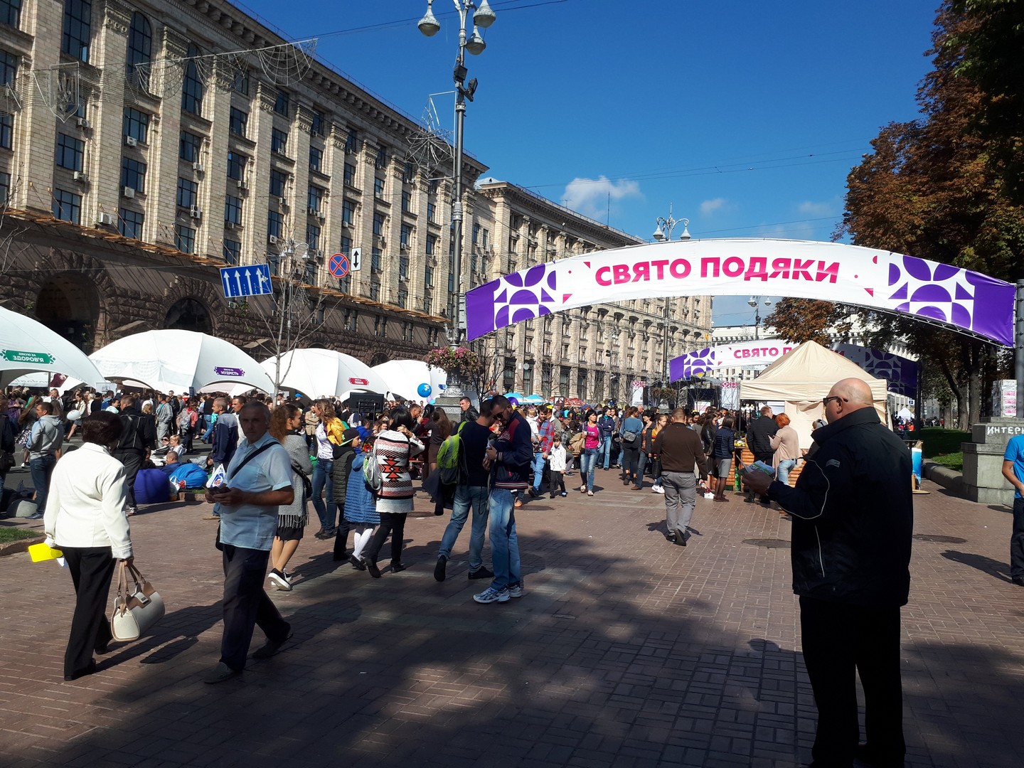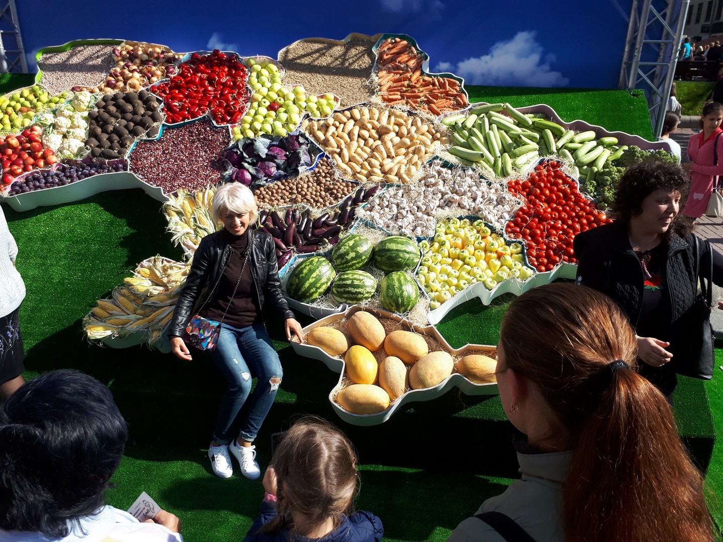 Много палаток, толпы людей. Понравилась овощная инсталяция карты Украины. Подойти было невозможно, все время фотографировались люди.