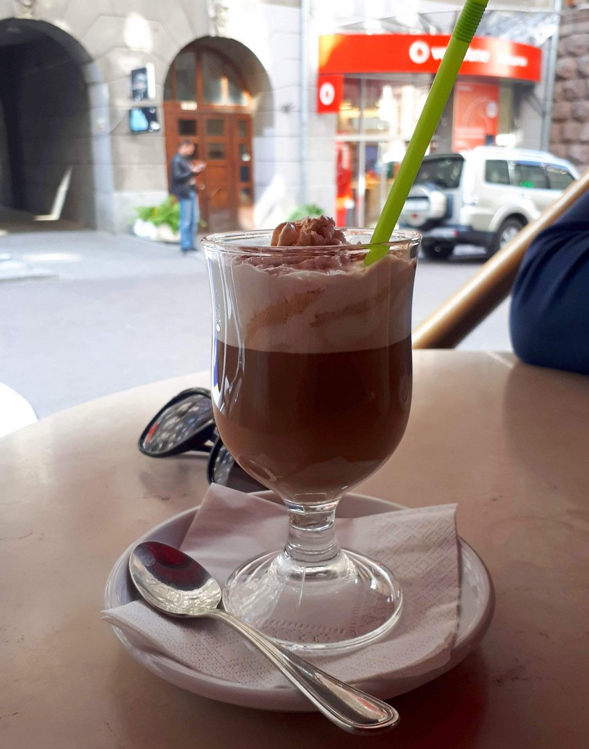 Как оказалось кафешка готовится к закрытию, поэтому не все из меню присутствует, но мы нашли для себя кофе по вкусу. Судя по всему, бармену надо было избавляться от остатков ликеров и алкоголя, потому как их в кофе было явно больше чем самого кофе))) А вобще – кофе конечно очень вкусный и обслуживание на высоте. Взяв заказ, нам принесли пледы и даже ими меня укрыли. Такие теплые, мягкие и уютные.