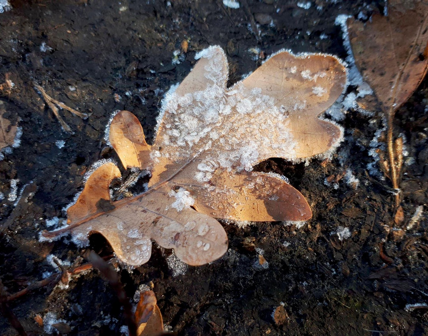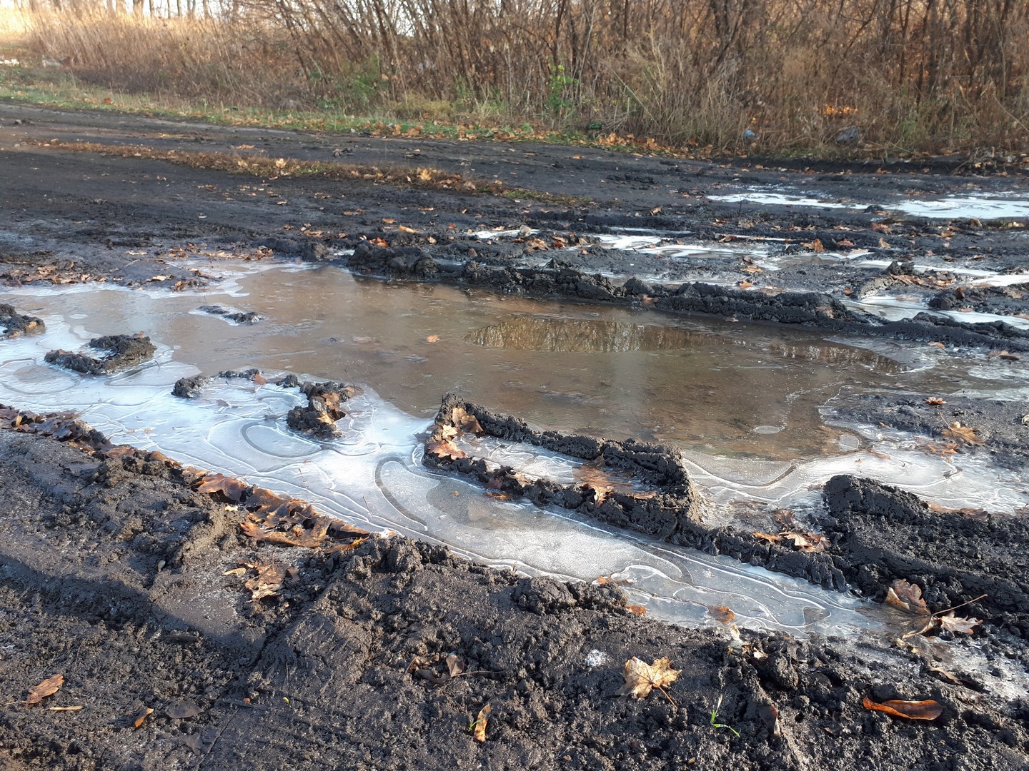 Вышла в полдень, а на земле все еще изморось была и даже лужи замерзли. Первые заморозки.