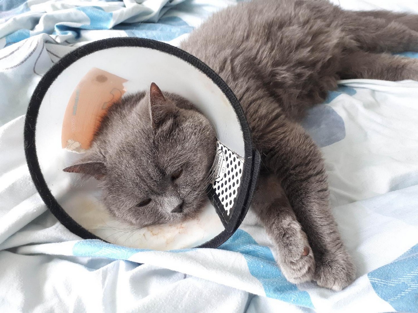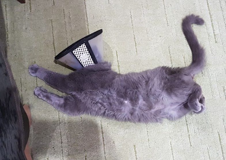 Сегодня 12 дней после операции и 3 дня мази. Нам разрешили торжественно снять воротник что мы и сделали. У кота счастье – можно повылизываться!